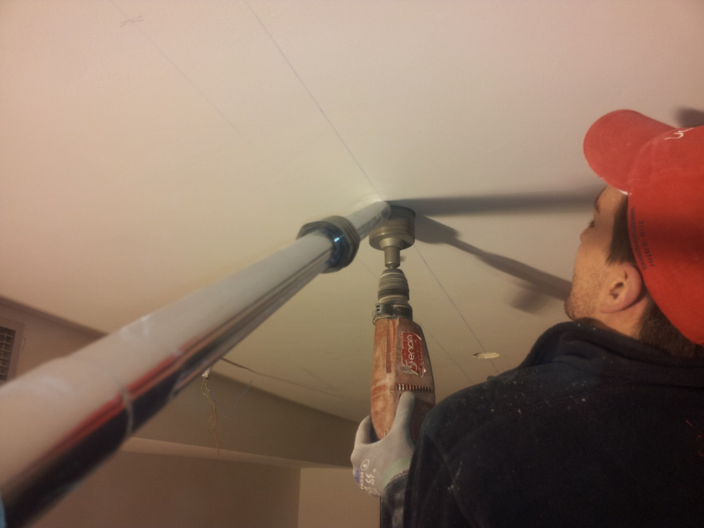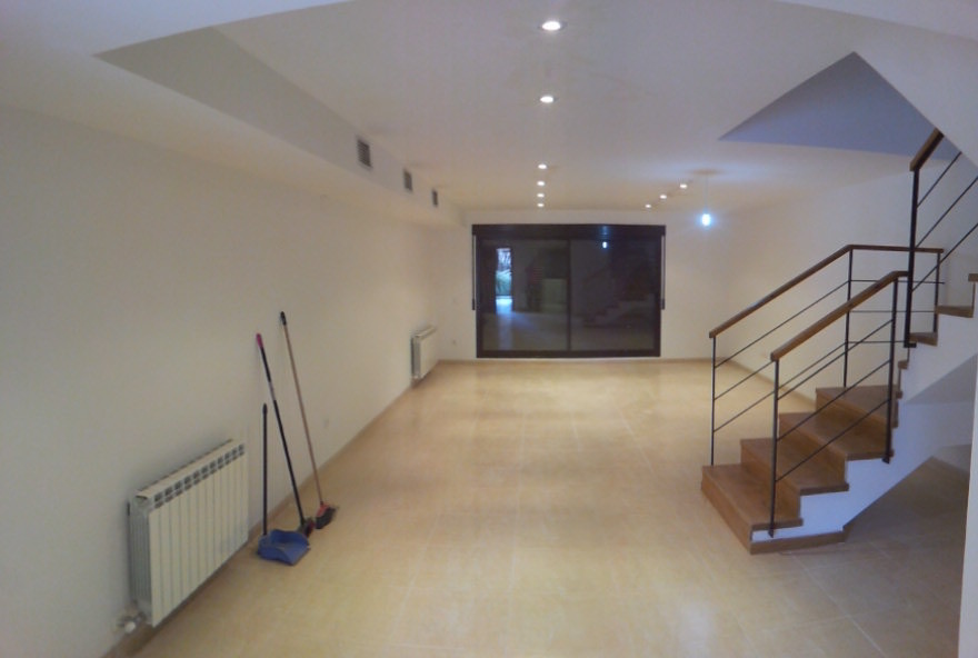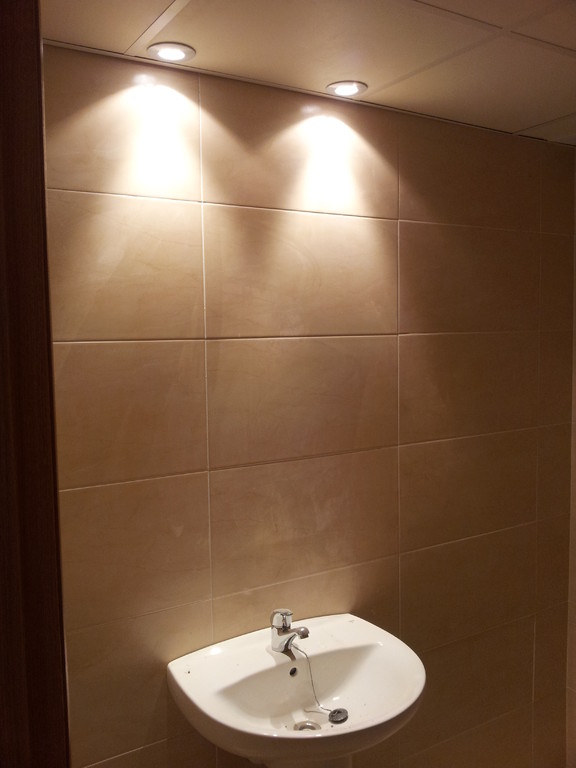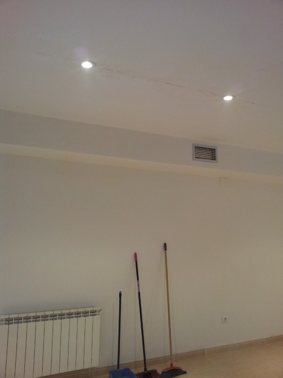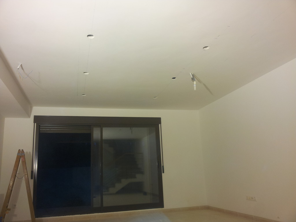 Instalación de una nueva iluminación encastrada en techos, se compone de distintos tipos de aros abatibles para crear una uniformidad en la iluminación de las estancias, iluminación con lámpara GU10 PHILIPS halógena de 35W y lámparas PHILIPS PLC de bajo consumo en 26W con arranque electrónico para evitar así los molestos parpadeos a la hora de encender las luces y alargar considerablemente la duración de las mismas.